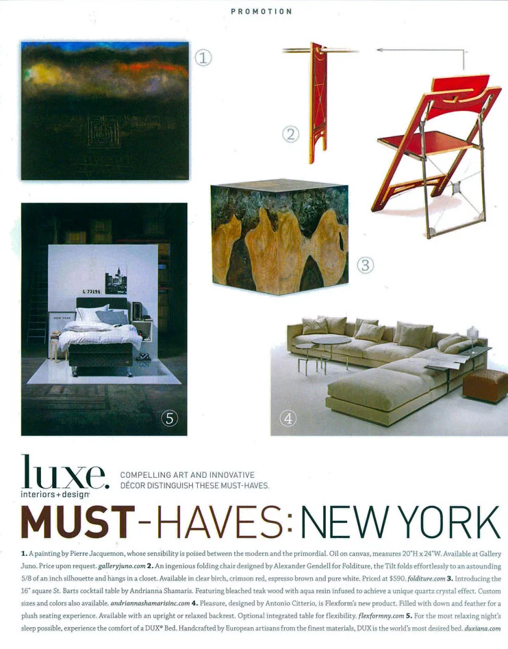 Luxe's MUST-HAVES: NEW YORK section features Pierre Jacquemon's oil painting (top left).
